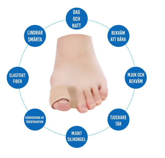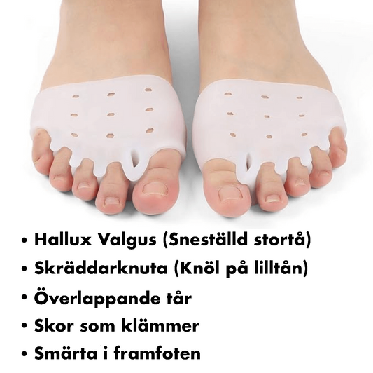 Tåseparatorer: Hjælper med at holde storetåen i korrekt position og mindske ubehag.