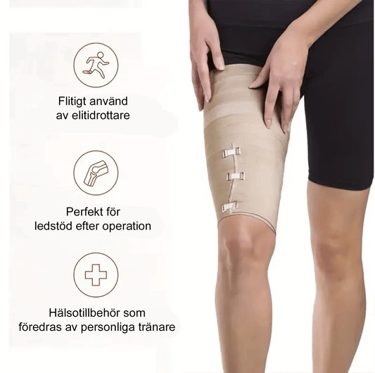 Neopren hoftestøtte til smertelindring i iskias, lyske og lår. Justerbar kompression, unisex-design