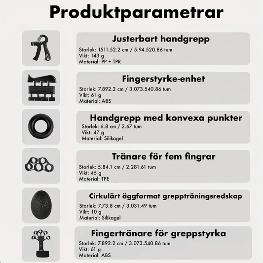 Gribestyrkesæt – Komplet træning til hænder, fingre og underarme (6 dele)