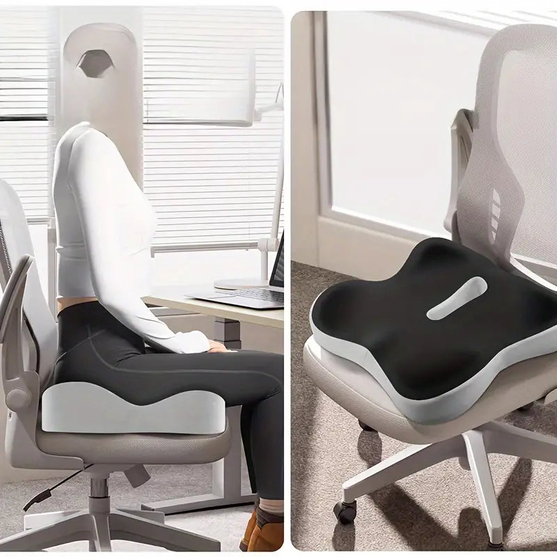 Denne ergonomiske sædehynde lavet af memory foam af høj kvalitet er designet til at give optimal komfort og aflastning. Perfekt til kontorstolen, bilen eller derhjemme, med specialfremstillet støtte til halebenet, der lindrer ryg- og hoftesmerter. Formen fremmer en bedre kropsholdning og er ideel til dem, der ønsker at sidde komfortabelt og reducere trykket på følsomme områder.