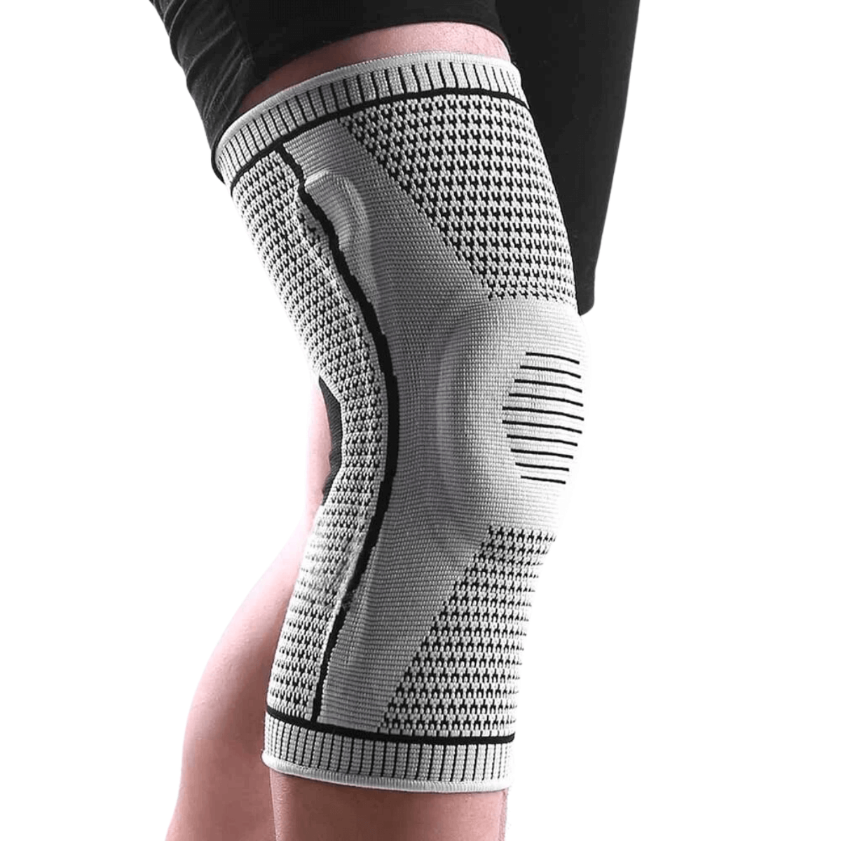 En behagelig og støttende knæbeskytter udstyret med fjedre for ekstra stabilitet og en silikonebeskyttelse rundt om patella for at give optimal støddæmpning og beskyttelse Perfekt til sport, træning eller daglig brug for at aflaste og styrke knæleddet