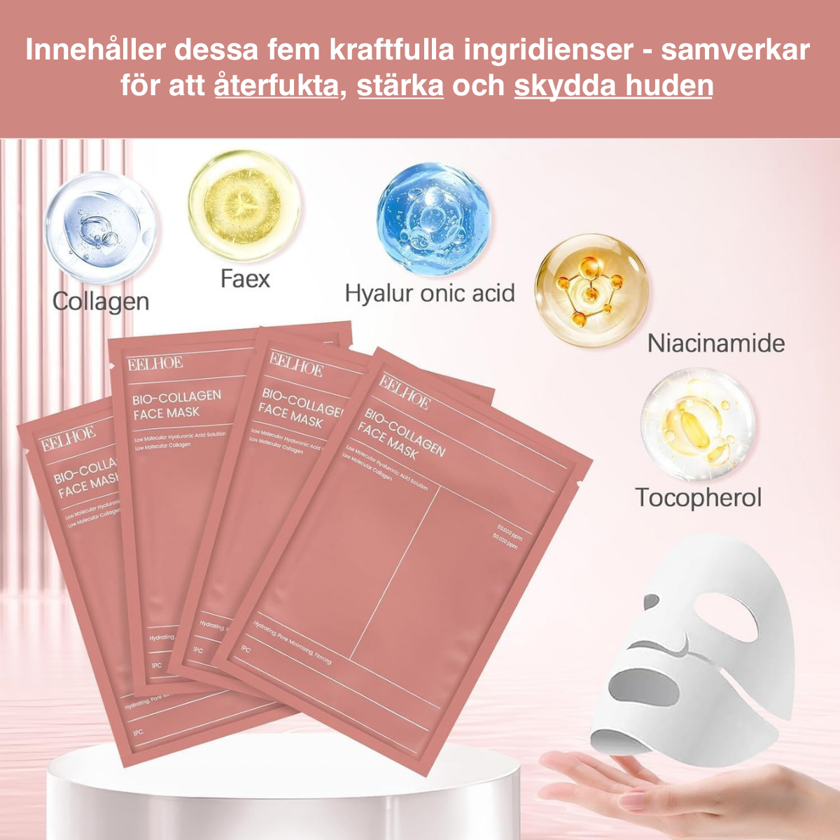 Giv din hud et luksuriøst boost med vores Kollagen Ansigtsmaske Denne fugtgivende og opstrammende ansigtsmaske er beriget med kollagen for at reducere fine linjer, give huden øget elasticitet og en strålende glød Perfekt til en anti-aging behandling, der efterlader huden blød, glat og fugtet