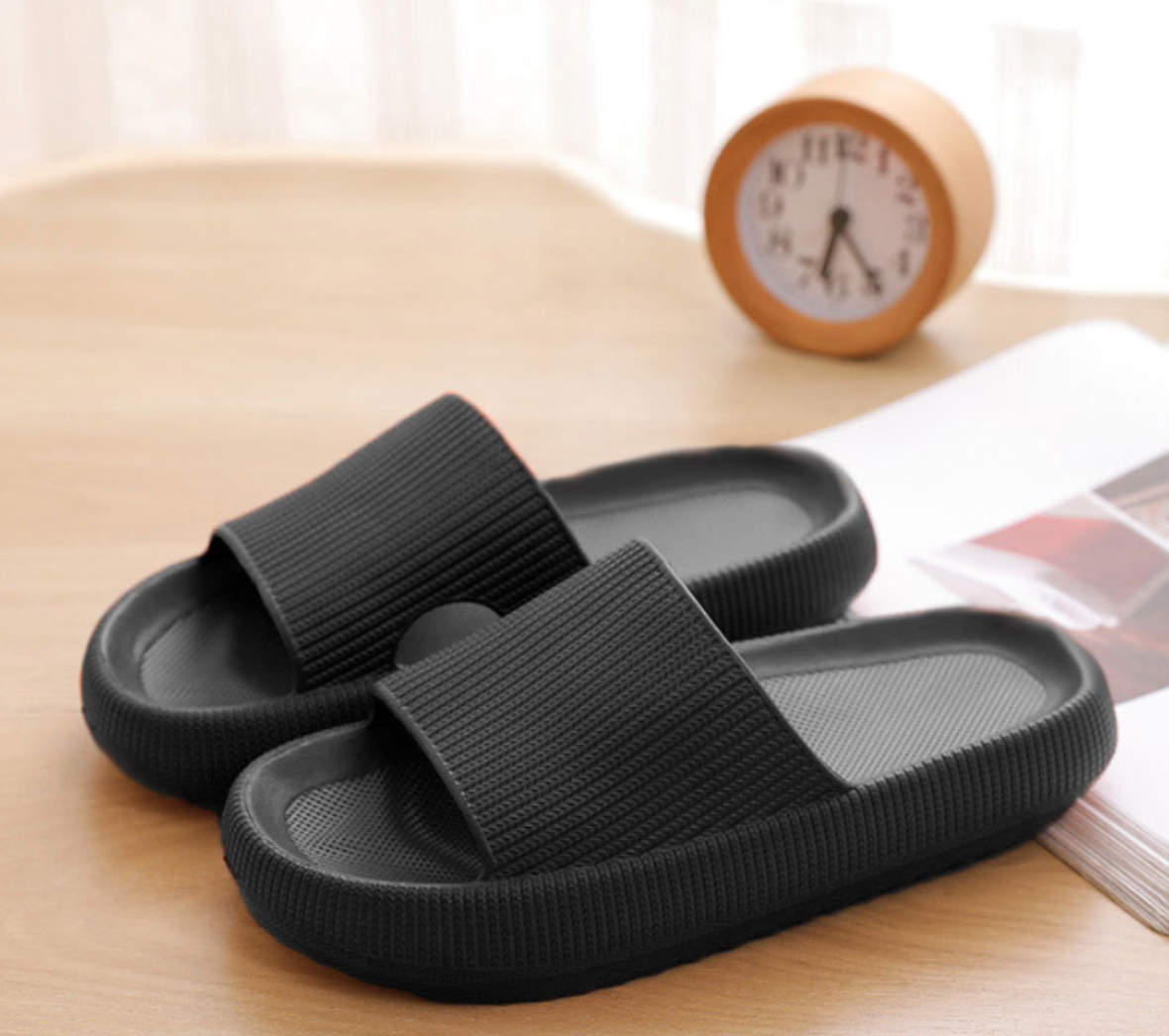 Nyd en overlegen komfort med vores ekstra bløde skytøfler Designet med en støddæmpende sål og en perfekt pasform, giver de en luksuriøs følelse af afslapning til dine fødder Tøflerne er små i størrelsen, så man kan have brug for at gå op i størrelse