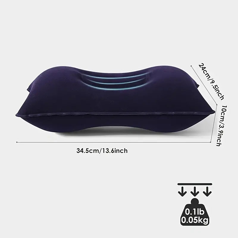 Den oppustelige pude giver perfekt støtte til både nakke og lænd. Den er justerbar for at give optimal nakkestøtte, og den kan også bruges som rygstøtte for at lindre tryk på lænden. Kompakt og let at tage med, ideel til rejser, kontoret eller når du har brug for ekstra komfort på campingturen.