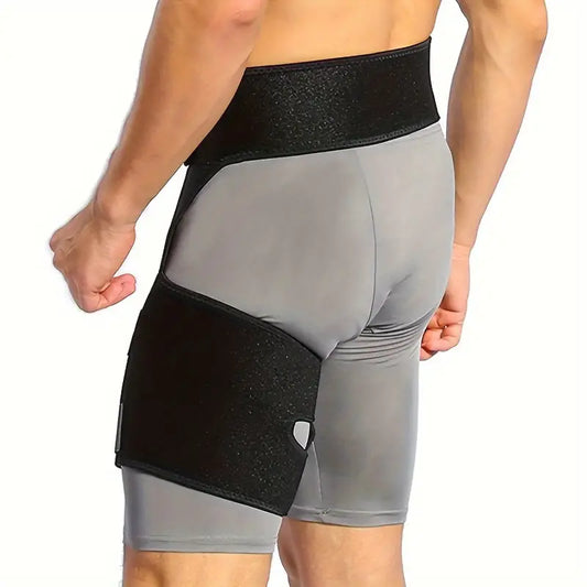 Neopren hoftestøtte til smertelindring i iskias, lyske og lår. Justerbar kompression, unisex-design